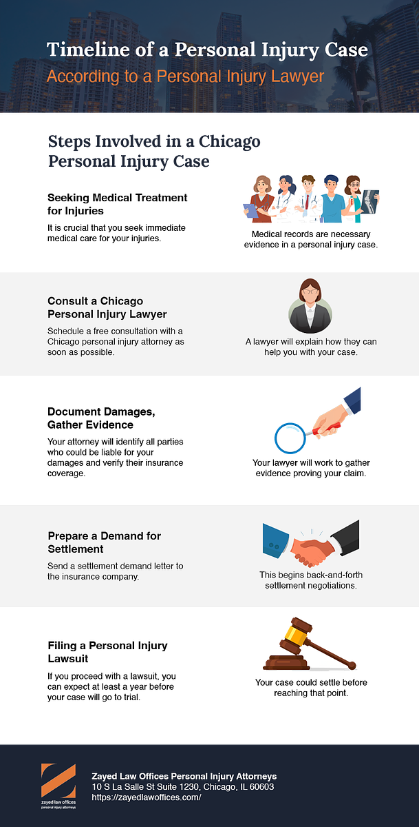Zayed Law Offices Personal Injury Attorneys will work to resolve your personal injury claim as quickly as possible without compromising your compensation. Call our office at (312) 726-1616 or contact us online to schedule your free case evaluation with an experienced Chicago personal injury attorney.